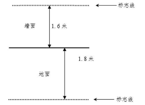 在平整的场地、墙面进行。在距离墙面1.8米处的地面、垂直距离地面1.6米的墙面上分别作标志线(见图示)。