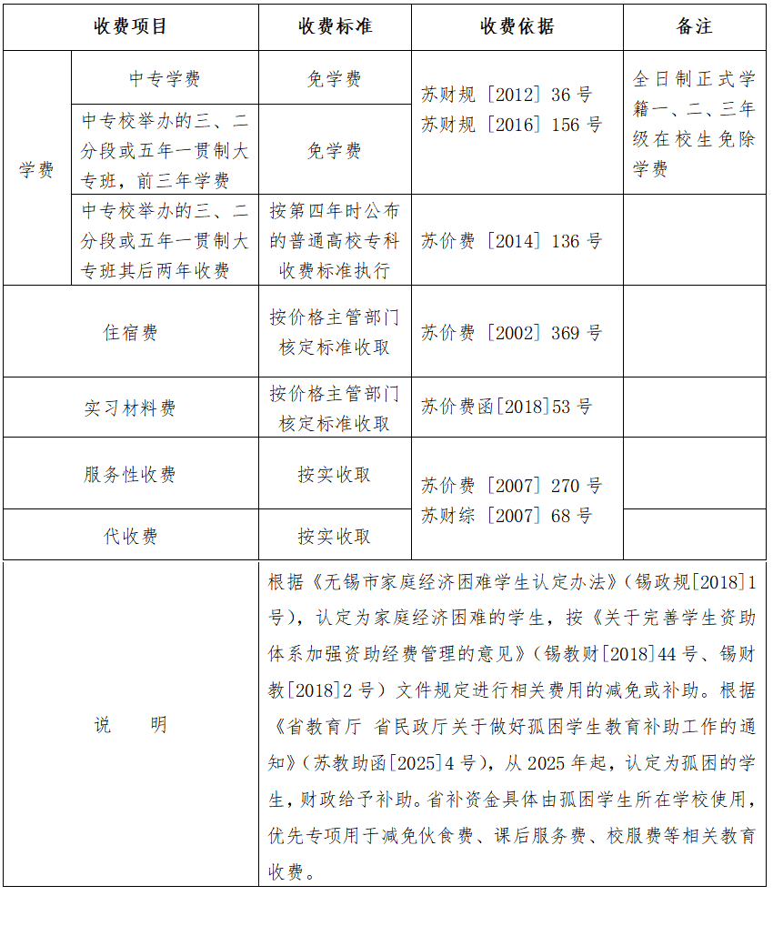 (五)无锡市公办中等职业学校收费表
