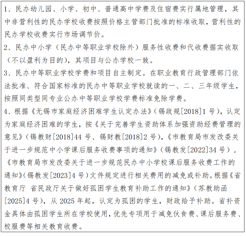(六)无锡市区民办中小学(幼儿园)收费说明