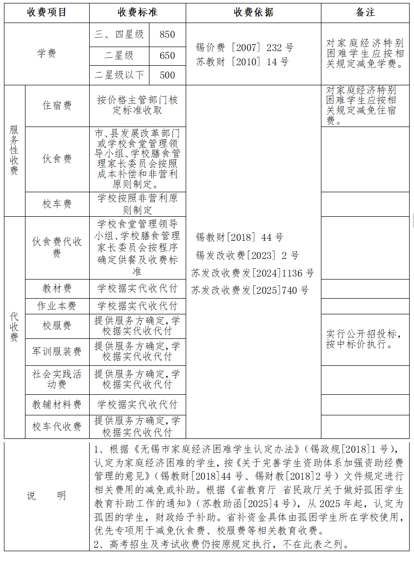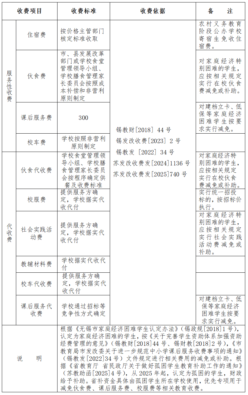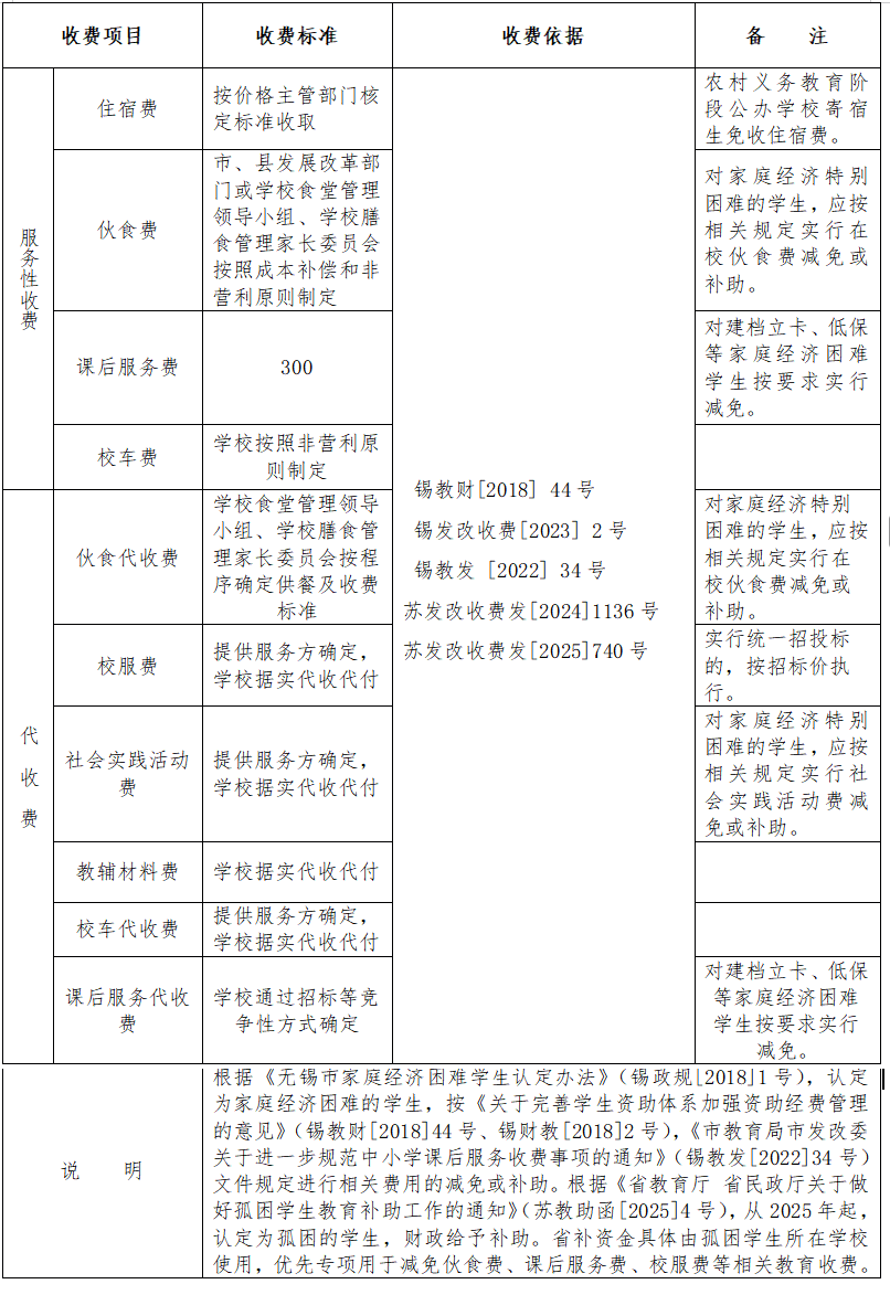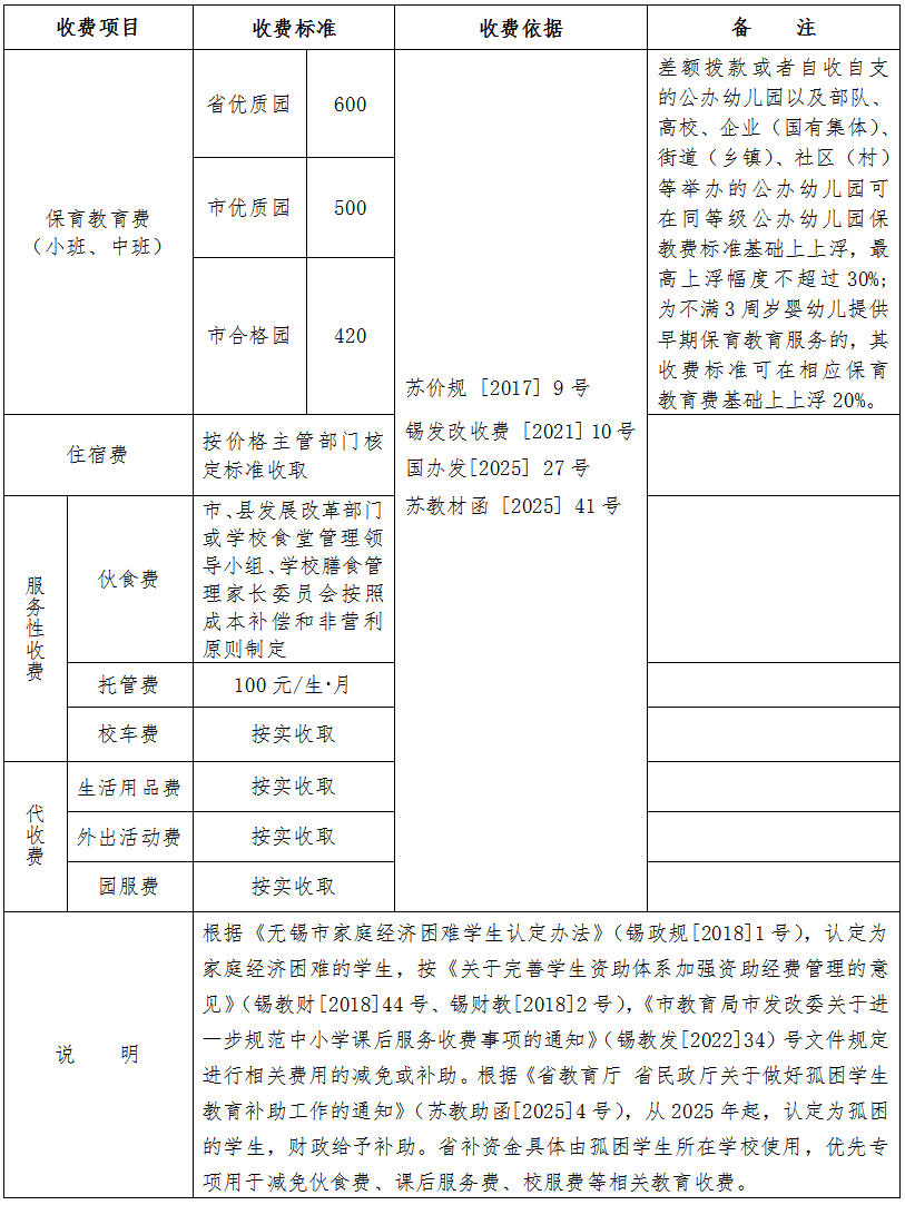 - 2025年秋季学期无锡市区中小学(幼儿园)收费表